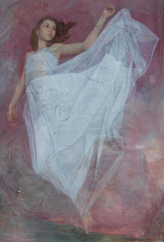 Les plis du Temps, acrylique et feuilles sur panneau